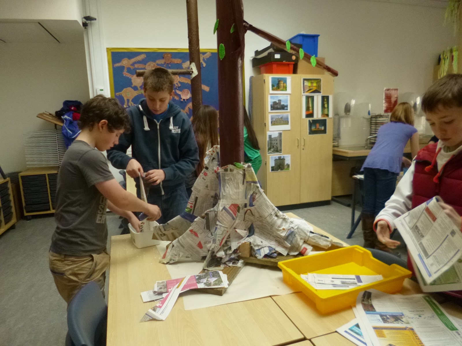 The rainforest trees are taking shape. Next week we will be continuing to add leaves and branches. Please send in any scrap materials you think might be of use...