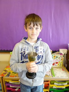 Last weekend a group of pupils went to Banchory to compete in a traditional music competition. The group included lots of members of P6. They did very well and returned home with quite a few prizes. Here is Audun with the cup he won in the accordian section.