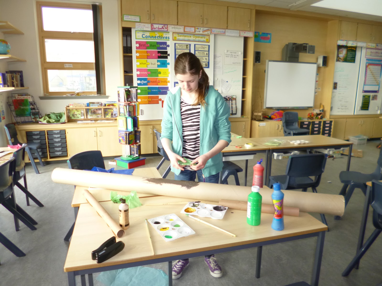 We have started making a few rainforest trees in the shared area outside our classroom. We already have a few large carpet tubes but still require other materials to turn them into tropical trees. The following things would be useful: