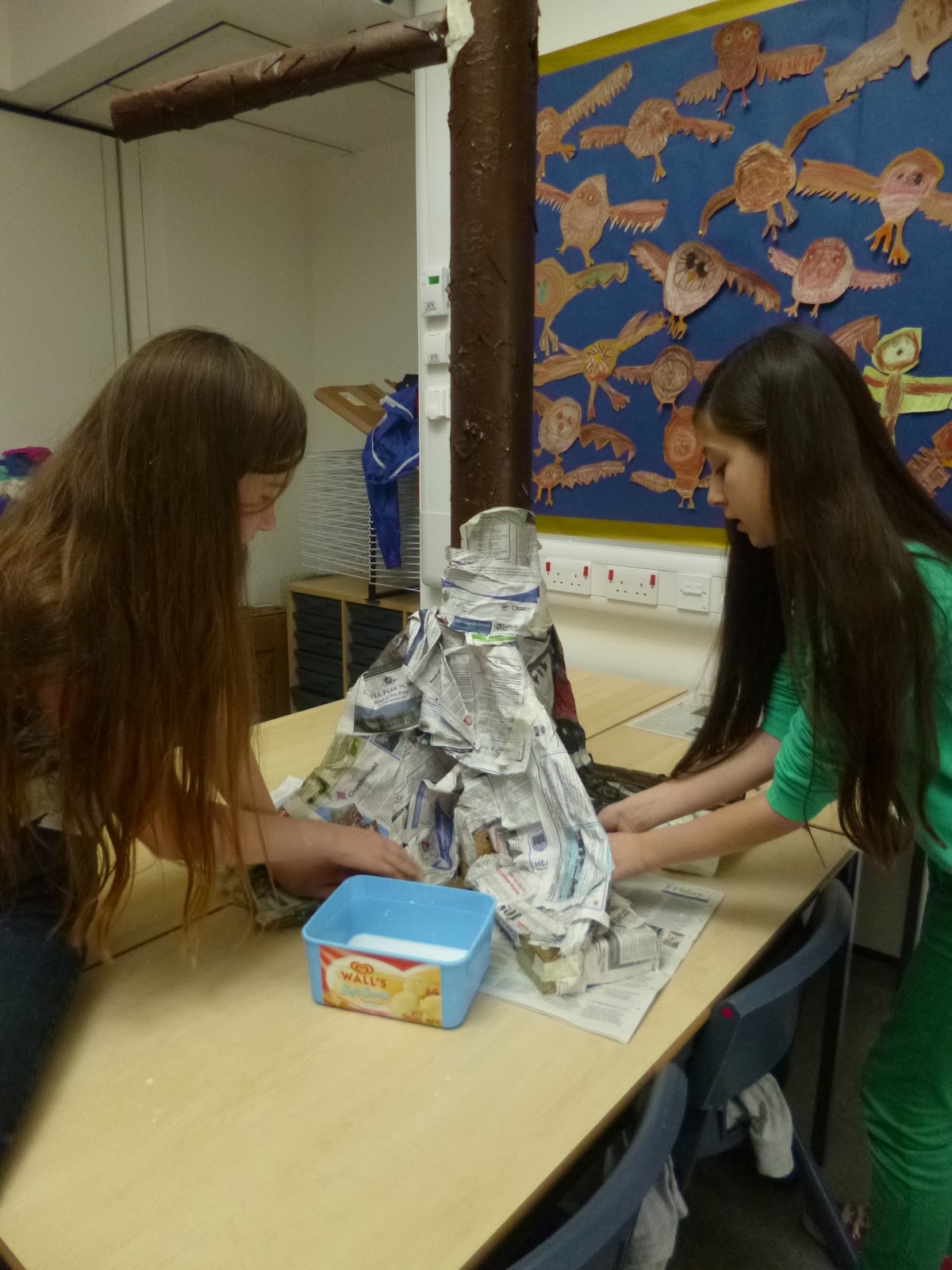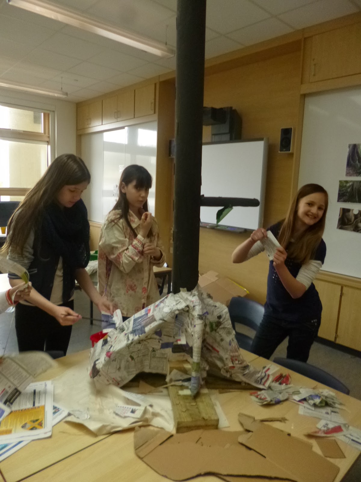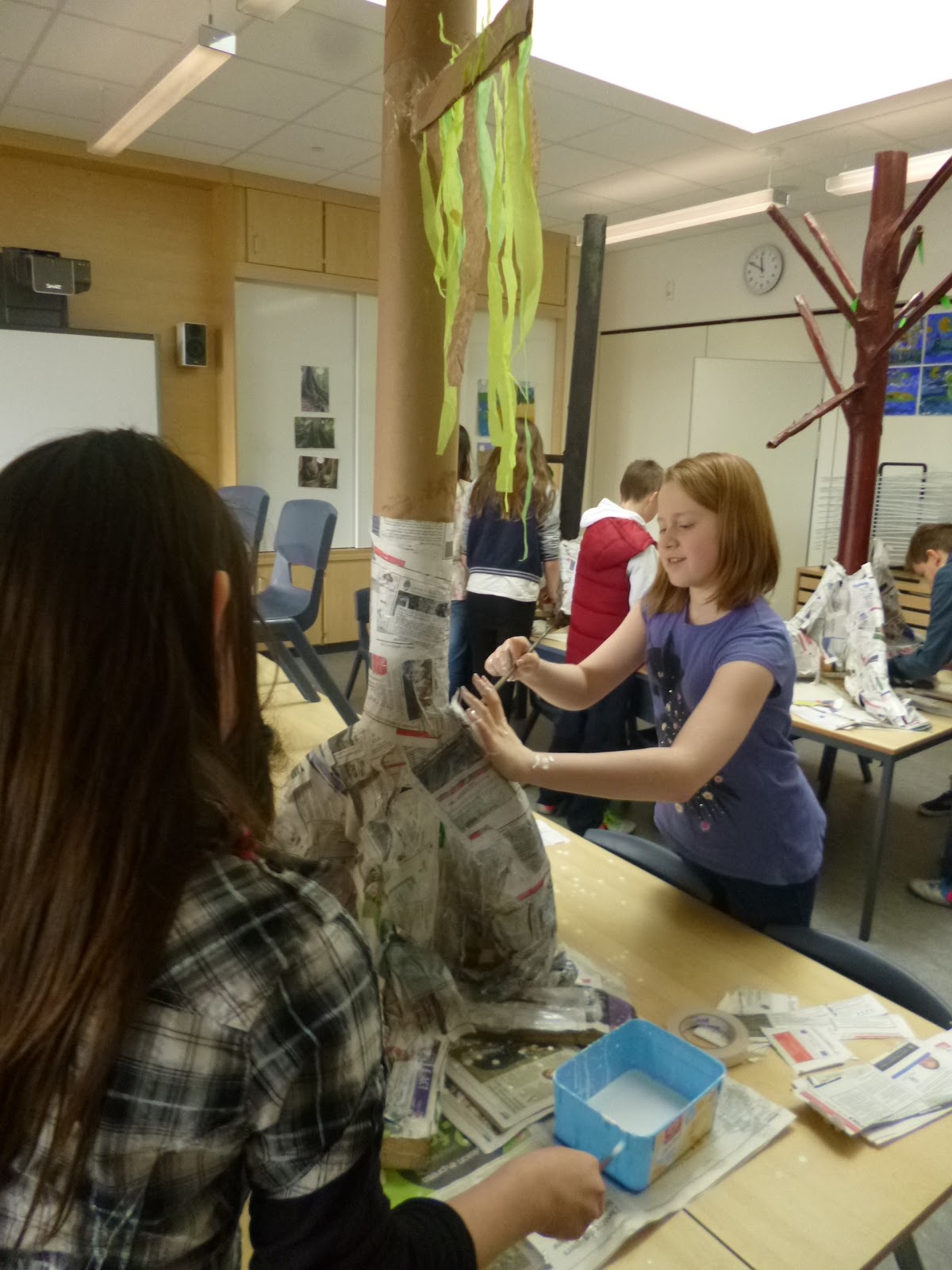 The rainforest trees are taking shape. Next week we will be continuing to add leaves and branches. Please send in any scrap materials you think might be of use...